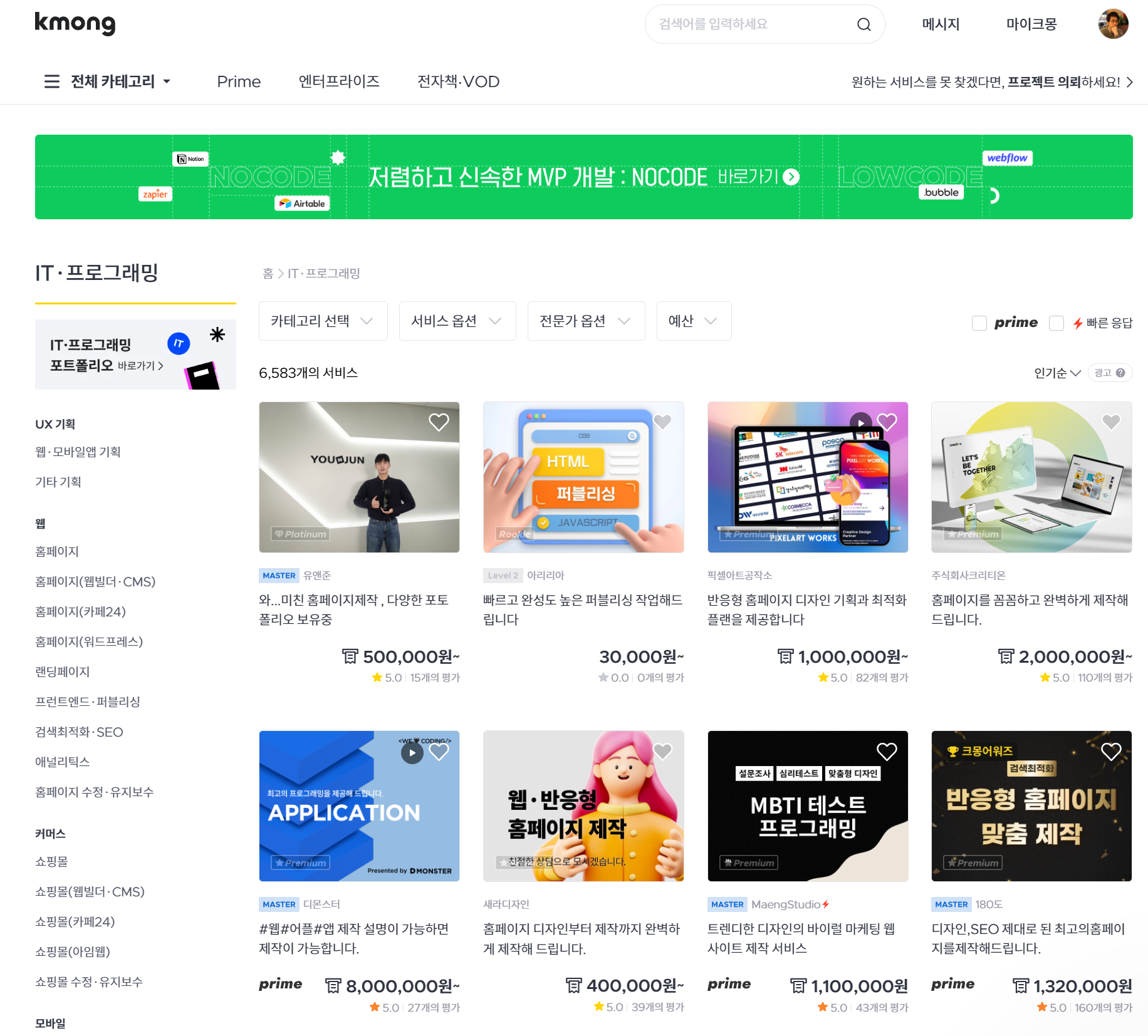 IT·프로그래밍 > 웹 카테고리에서 평점이 좋은 업체 순으로 정렬해서 보시면 됩니다.