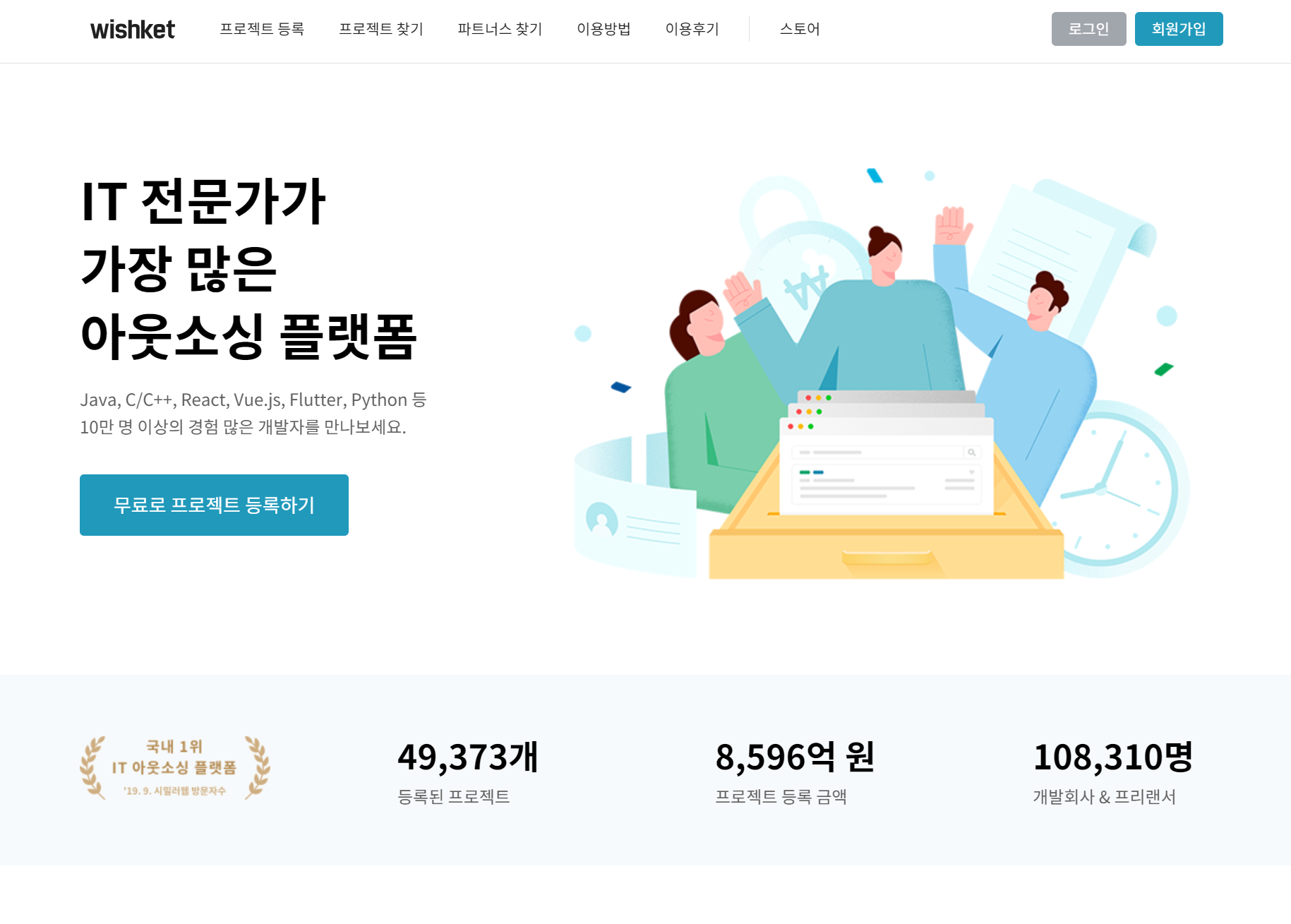 크몽이 재능마켓으로 구성되어 있다면, 위시켓은 고객의 프로젝트 위주로 구성되어 있습니다.